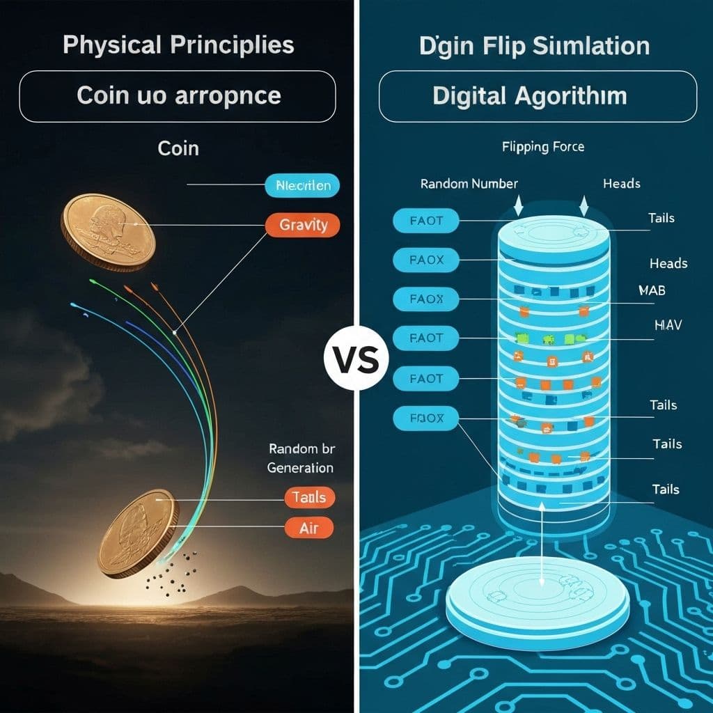 A digital coin toss is a virtual simulation of flipping a physical coin, designed to produce random binary outcomes (heads or tails) using computer algorithms. Unlike physical coins that rely on mechanical forces and air resistance, digital coin flips use mathematical randomness to determine results.